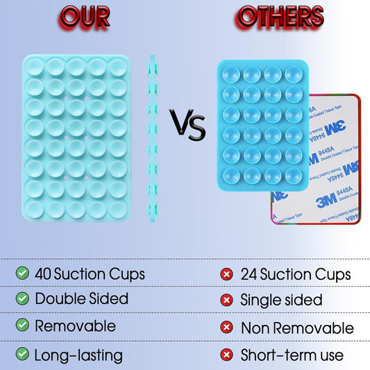 Suction Cup Mount, Double Sided Silicone Case, Sticky Grip for Iphone and Android, Hands-Free Fidget Toy Mirror Shower Phone Holder for Selfies and Videos (Baby Blue)